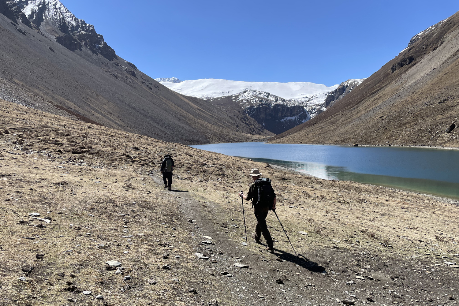 Day 12 - Cross the river and climb to the next pass, the Laname La 4,304m/14,121ft, next to a small lake. Continue down to camp at Daluna, below Drakey Pangtsho. Approximately 5-6 hours.